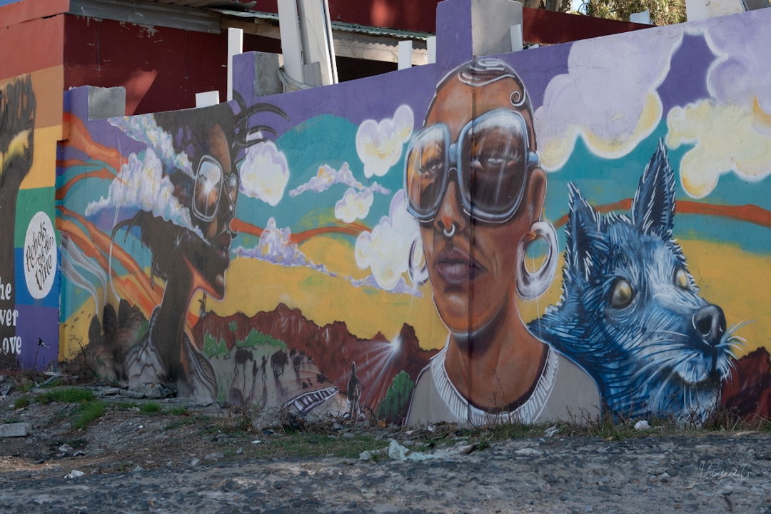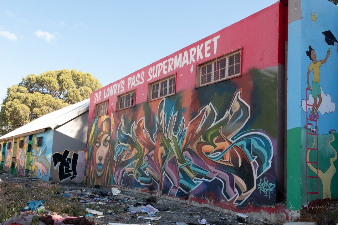 We were welcomed by large, colourful paintings stretching across several walls. They form part of the “Paint Sir Lowry’s Pass Village” project, started in April 2024 by local decorative artist Charlie Vettori, who brings more than forty years of mural experience to the initiative. What began as a single painted wall slowly grew into a shared community effort involving residents and local artists — bringing pride, colour and joy to spaces once overlooked. (Charlie Vettori: artscharlievett@icloud.com | charlievett@icloud.com)